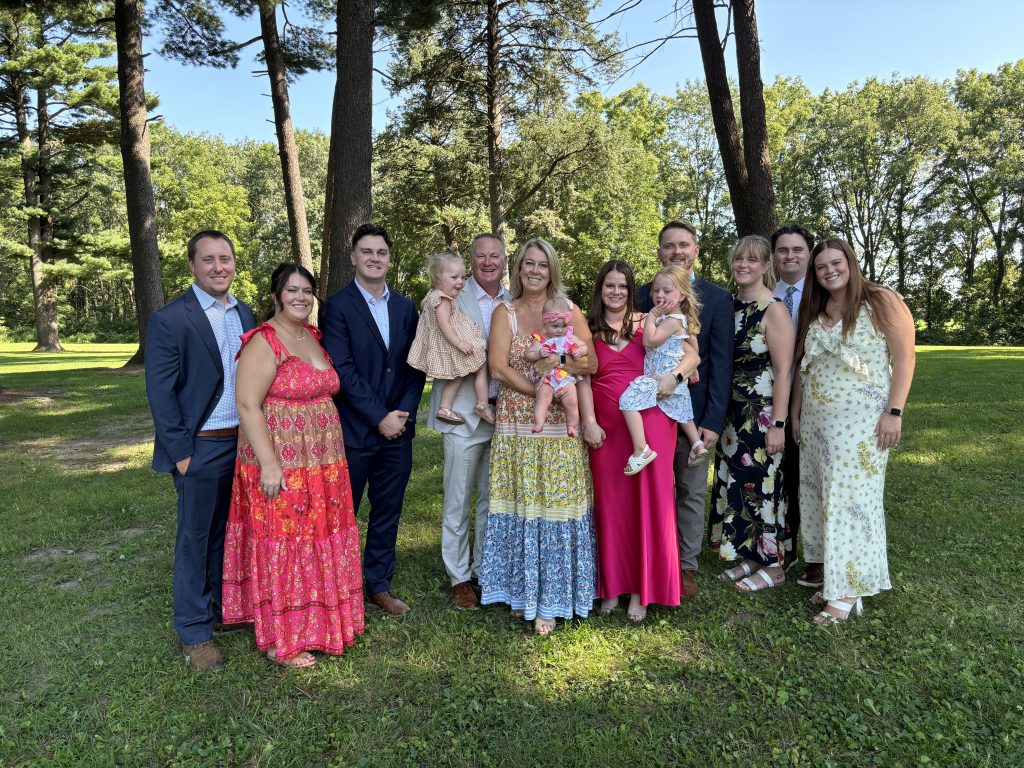 Front: Lilly, Me with Blair, Eric with Lanie, Maddie, Back: Logan W. (Lilly’s husband), Heath, Hayley, Trevor (Hayley’ husband), Faith, and Logan F. (Faith’s boyfriend)…Colette and Brock weren’t born yet!